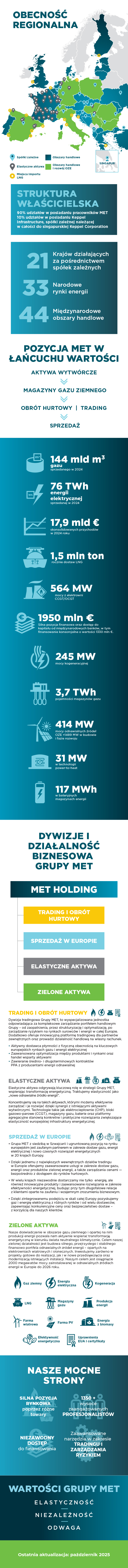 MET Group to zintegrowana europejska firma energetyczna, która działa w branży gazu ziemnego i energii elektrycznej, skupiając się na hurtowej sprzedaży wielu towarów, handlu i sprzedaży, a także infrastrukturze energetycznej i aktywach przemysłowych.